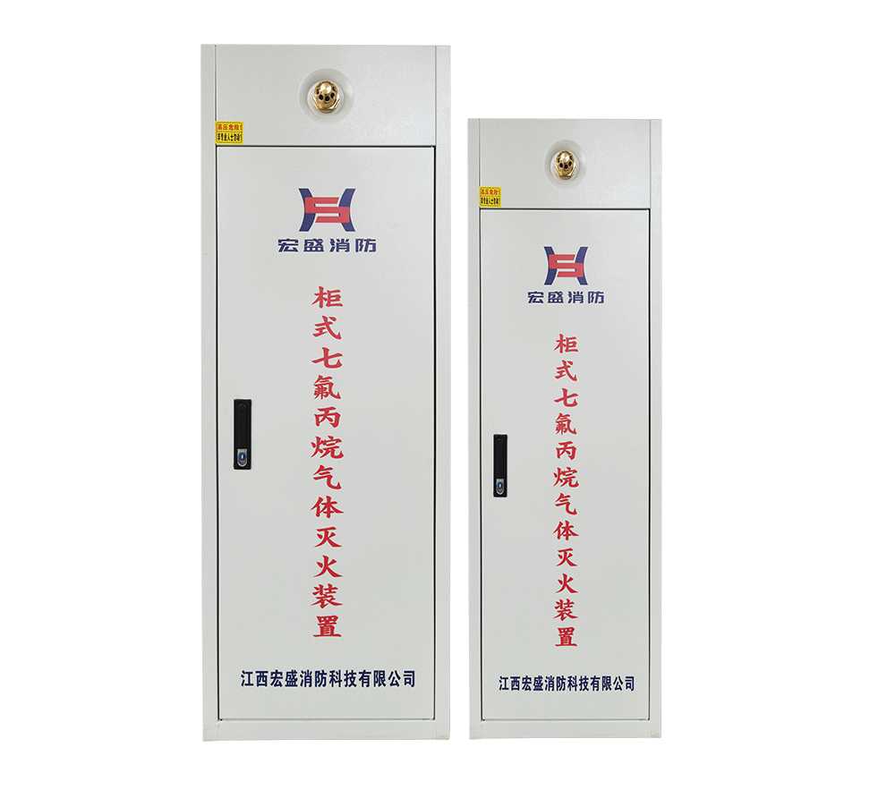 柜式七氟丙烷气体灭火装置又称无管网七氟丙烷装置,是一种预置的以全淹没方式灭火、独立成套、可以移动的灭火设备,具有安装轻巧方便、外形美观、灭火剂无管网损失、灭火效能高速度快等特点。柜式七氟丙烷气体灭火装置可以与消防控制中心相连接,由火灾报警灭火控制器驱动实施自动灭火,该装置不需要设置专用的设备间,整套灭火设备均在保护区内。火灾发生时,本装置可直接向保护区内自动喷洒药剂,方便快捷,一个保护区设置一套系统,几台装置连用可以保护较大区域。