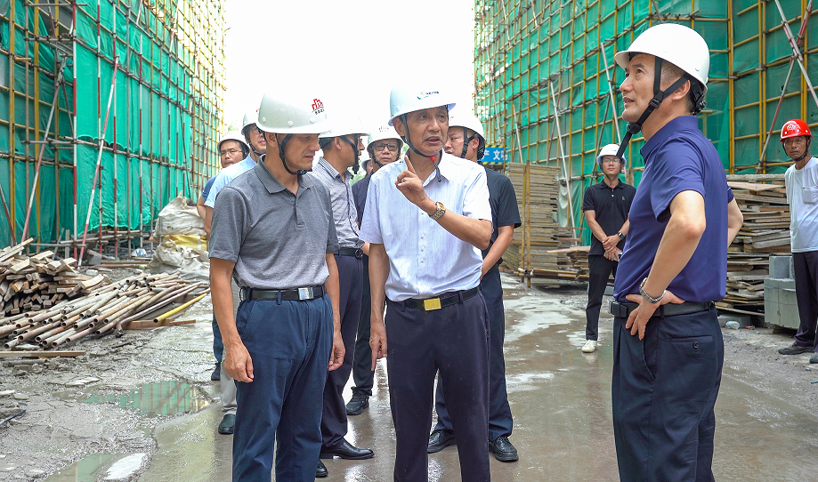 调研组首站深入园区一期项目工地现场。烈日下,工人们挥汗如雨,主体结构已全面封顶的建筑群巍然矗立。潘维伍向吴晓源副厅长一行介绍,园区传承军人优良作风,克服高温挑战,严守质量底线,全力推进工程进度。一期项目预计今年9月竣工、10月正式投产,将打造集军创服务大厦、军创产业园、军创孵化器等为一体的核心功能区。同时,占地44亩的二期工程已于7月23日启动建设,计划12月底封顶,2026年8月建成投产,确保所有项目在2026年8月前全面竣工,向建军99周年献礼。