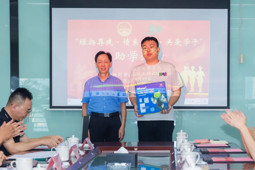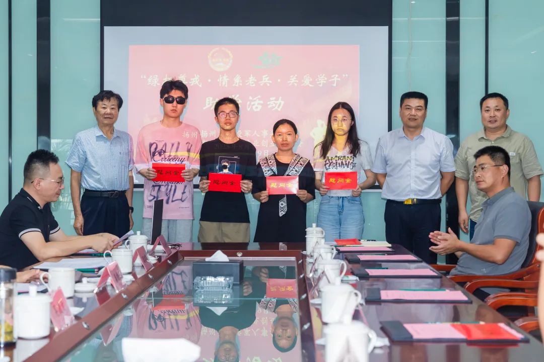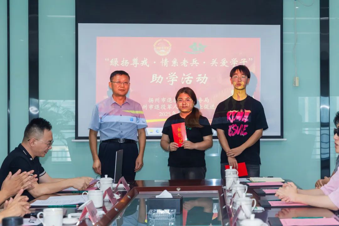 2025年8月19日,扬州市退役军人事务局、扬州市退役军人就业创业促进会联合在华腾军创(扬州)科技园成功举办“绿扬尊戎·情系老兵·关爱学子”慰问暨军创企业家“走进华腾 参与华腾”合作对接活动。扬州市退役军人事务局党组成员、副局长、促进会副理事长吴敬文,扬州市退役军人事务局就业创业处处长、四级调研员、促进会副秘书长顾建军,华腾军创园董事长、江苏省退役军人就业创业服务促进会副会长潘维伍,江苏百润餐饮管理股份有限公司董事长、促进会副理事长徐伟等领导,以数十多位军创家、10名退役军人家庭大学生子女共同参与了这场融合了助学慰问、园区推介、合作洽谈的多维度盛会。情系学子