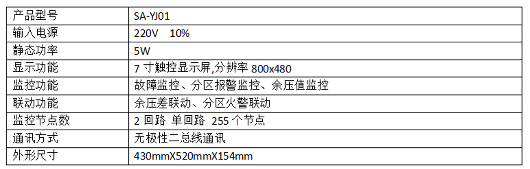 2、与余压控制器,余压传感器以及消防接口模块配接,支持2个回路最多510个节点,方便灵活构建大容量疏散通道的余压监控系