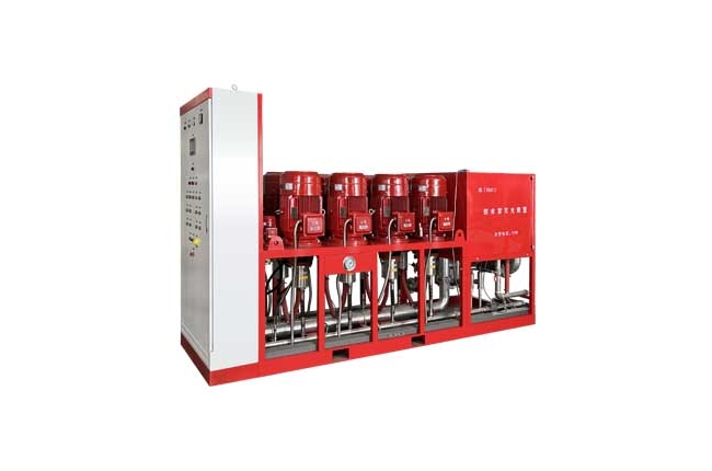 细水雾灭火装置由高压细水雾专用储水箱、细水雾灭火装置泵组单元(包括高压主泵、高压备泵、稳压泵、泵组单元控制柜、进水电磁阀、