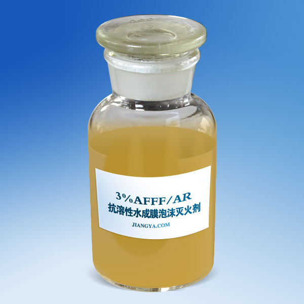 抗溶性水成膜泡沫灭火剂由黄原胶、碳氢表面活性剂、氟碳表面活性剂、高分子复合物、抗烧剂、稳定剂、抗冻剂等组成,是一种多用途高效泡沫灭火剂。该灭火剂除具有一般水成膜泡沫灭火剂的灭油类火灾的性能外,还具有优良的扑救醇、酯、醚、酮、醛、胺、有机酸等可燃极性溶剂火灾的能力,贮存期长,可以在各种低倍数泡沫产生设备中与水按3:97或6:94的比例混合发泡。