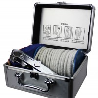 1.打开铝合金箱,先取出绳盘,将绳盘上的挂钩挂在挂板上固定好,然后把绳盘从窗外放下;