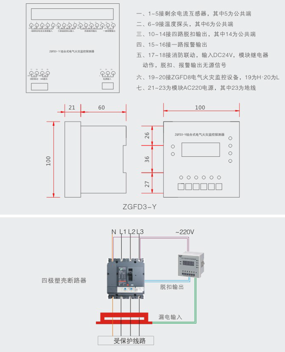 1~4路漏电,1~3路温度 漏电与温度双监控功能 面板嵌入式安装,安装方便,体积小巧,操作简单