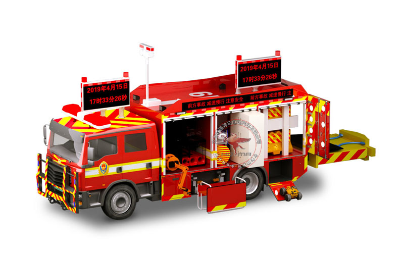 消防救援高速警戒车根据我国高速公路消防救援实战需要,研发的具备高识别性、防撞能力、远程预警、测速测距、声光警示、字幕提醒、道路指示、广播通信、阻挡拦截、缓速隔离、安全防护等综合功能的警戒专用车辆,配置到高速公路 事故处置任务繁重的消防救援站,弥补国内消防救援专业警戒车辆空缺。