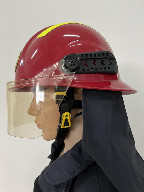 1.消防头盔由盔壳、滑轨、缓冲层、舒适衬垫、佩戴装置、面罩、披肩等组成;