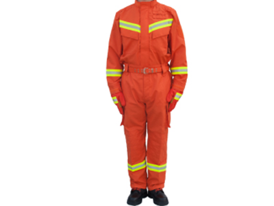 2、面料:采用双层结构织法;颜色为潘通色号17-1456TpX Tigerlily橘红色;单位面积质量200±10 (g/m2), 阻燃性能:续燃时间0s,经向损毁长度≤50mm、纬向损毁长度≤48mm,且无熔融、滴落现象;断裂强力:经向≥990N、纬向≥980N;撕破强力:经向≥140N、纬向≥140N;耐洗沾色、耐水摩擦色牢度4-5级;热稳定性能:收缩率≤1.0%,表面无明显变化。接缝断裂强力≥840N;防静电性能:整套救援服的带电量≤0.6uC;