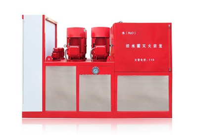 闭式湿式细水雾灭火系统由高压泵组、闭式细水雾喷头、分区控制阀、系统过滤装置、水箱、供水管网等构成。平时系统管网内始终充满具有一定压力的水,整个管网是一个封闭的管道系统火灾发生时,闭式喷头的玻璃球受热爆裂高压泵组自动启动,此时高压水流通过细水雾喷头雾化后喷放灭火;只有着火区域内(受热爆裂)的喷头喷雾,其它区域不喷雾。