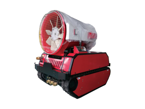 消防排烟灭火机器人是采用大功率进口柴油发动机,液压驱动底盘高,攀爬性能强劲,有两大主功能,灭火和排烟。灭火系统可有效的替代拖车炮、移动炮,利用自身动力将消防炮遥控至需要的位置;有效的替代消防战士靠近火源及危险场所进行侦察、灭火等作业,操作人员最大可在距离火源1000米以外进行灭火作战,避免不必要的伤亡:排烟系统可为火灾被困人员提供抢救时间,将现场的烟雾及时排出去,降低被困人员因烟雾而受到窒息和中毒,提高了被抢救的时间。