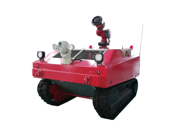 消防机器人是采用大功率进口柴油发动机,液压驱动底盘高,攀爬性能强劲。而且采用了先进的液压发电技术可以对外围设备进行平稳供电。采用履带式底盘,机动灵活,可快速转向,可爬坡,越野能力强。可有效的替代拖车炮、移动炮,利用自身动力将消防炮遥控至需要的位置;有效的替代消防战士靠近火源及危险场所进行侦察、灭火等作业,操作人员最大可在距离火源1000米以外进行灭火作战,避免不必要的伤亡。