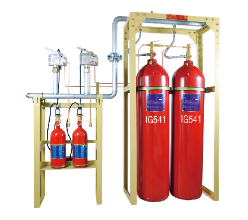 QMH15/90 IG541气体灭火系统主要由自动报警灭火控制系统、灭火剂储瓶、启动气体储瓶、瓶头阀、安全阀、电磁瓶头阀、选择阀、单向阀、压力开关、减压装置、框架、喷嘴、管道系统等主要部件组成。