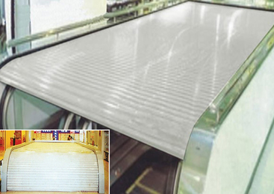 作为自动扶梯口的防火隔断,其帘板作水平方向运动,与垂直卷帘相比,减少了隔断面积,可节约投资费用。