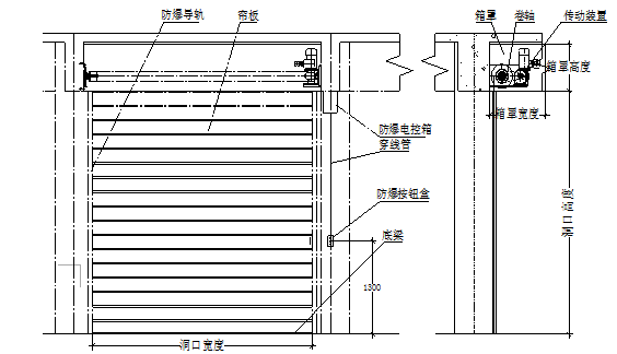 钢质防爆卷帘的规格尺寸与《建筑门窗洞口尺寸系列》(GB 5824-2008)一致,