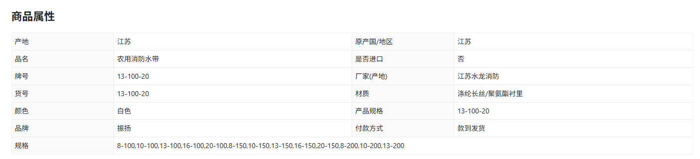 消防水带(有衬里、聚氨酯、PVC、橡胶等) 消防水枪、消防接口、水带接口 农用水带、大口径排涝水带、高压喷灌水带 消防设备、消防器材及配件加工销售