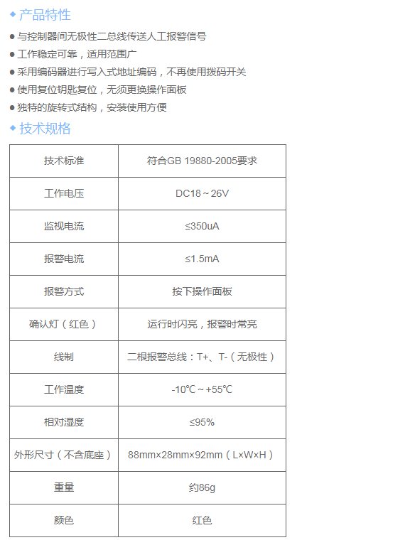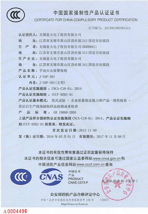 J-SAP-501手动火灾报警按钮