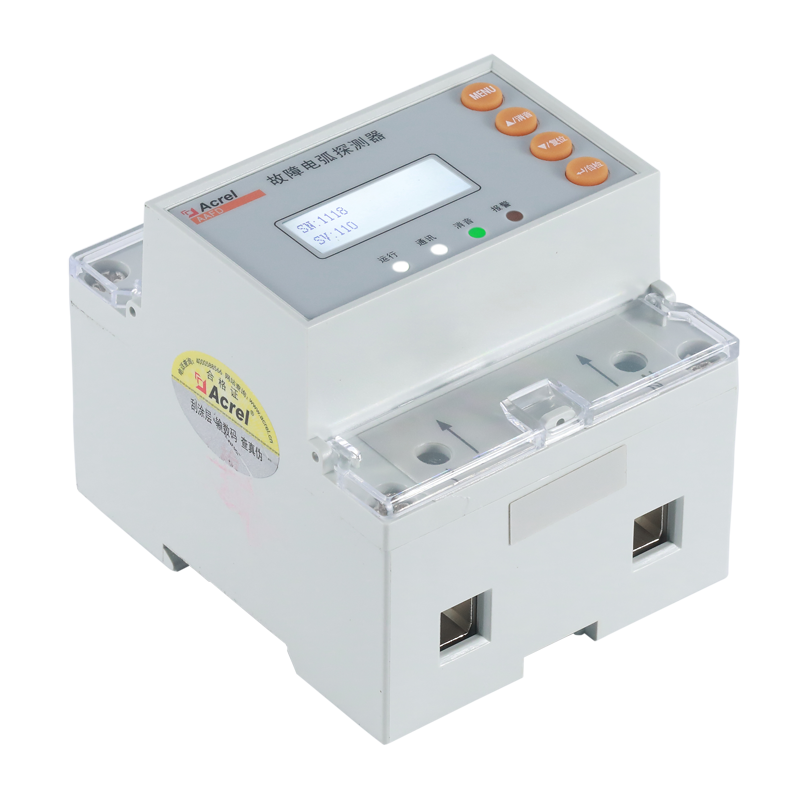 故障电弧探测器(以下简称探测器)对接入线路中的故障电弧(包括故障并联电弧、故障串联电弧)进行有效的检测,当检测到线路中存在引起火灾的故障电弧时,可以进行现场的声光报警,并将报警信息传输给上端监控设备,以实现预警火灾发生的目的。