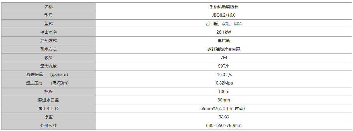 该手抬机动消防泵组是采用美国百力通双缸汽油机与本公司研制的单级离心泵组组成。它集中了国内外同类产品的先进结构和优良性能,具有起动迅速、使用可靠、维护方便等特点,并且引用了现代先进的滑片泵引水装置,具有引水深度深、速度快等特点,可适用于城镇、工矿企业、仓库货场、农村等扑灭火灾之用。