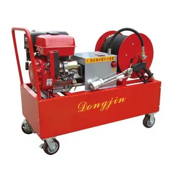 细水雾枪(移动式高压细水雾灭火装置),风冷四冲程单缸汽油机,功率8.2kW(15马力),额定流量30L/min,电启动/手拉绳启动,额定出口压力10MPa,水雾射程16m,细水雾射程8m,水箱容积125L,软管长30M